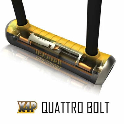 X4P Quattro Bolt : ce système de verrouillage breveté garantit une haute sécurité et une extrême résistance à la traction en verrouillant la barre transversale à l’anse en 4 points.